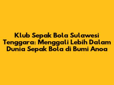 Klub Sepak Bola Sulawesi Tenggara: Sejarah, Prestasi, Dan Perkembangan