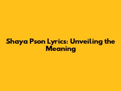 Shaya Pson Lyrics: Unveiling The Meaning
